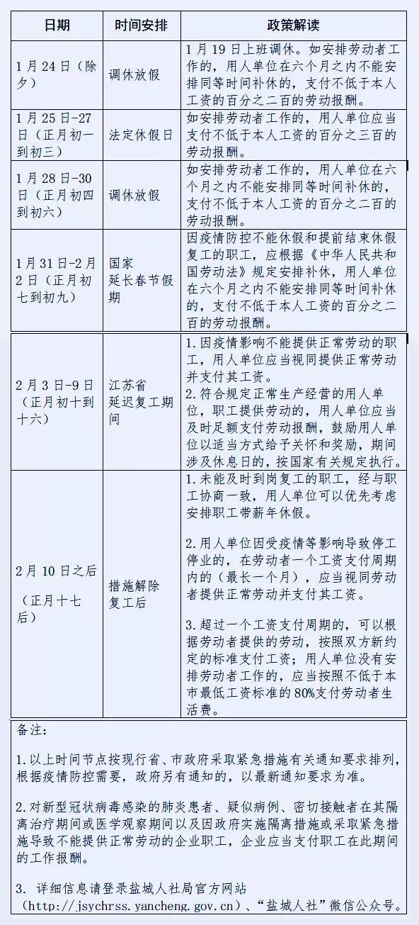 鹽城市春節(jié)假期和延遲企業(yè)復(fù)工期間有關(guān)問題解讀