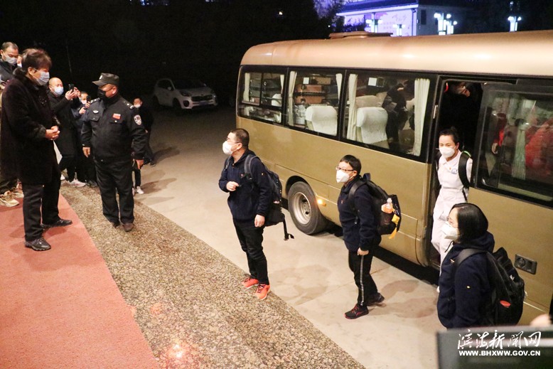 3月17日晚,我縣援鄂醫(yī)護(hù)人員在圓滿完成救治任務(wù)后平安歸來?! ?(本報(bào)記者 邢馨 攝)