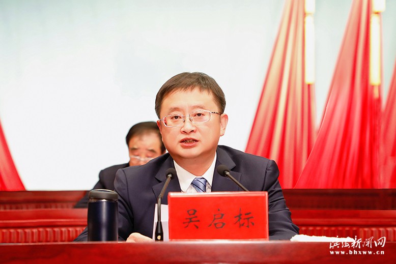 1月9日,縣委書記吳啟標在政協(xié)濱??h十四屆三次會議上講話。 (本報記者 劉朔池 攝)
