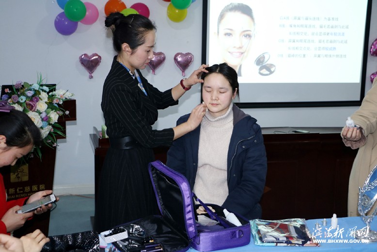 當(dāng)日下午,在該院黨支部、婦聯(lián)共同組織下,舉辦以“呵護(hù)健康、綻放美麗”為主題的茶話(huà)會(huì)。該院黨支部書(shū)記、人資部主任張教秀代表院領(lǐng)導(dǎo)班子,向全院婦女職工致以節(jié)日的問(wèn)候,對(duì)她們?cè)卺t(yī)院的發(fā)展歷程中作出的貢獻(xiàn)給予充分肯定和贊揚(yáng)。隨后,該院工會(huì)主席陳波在致辭中,希望女員工們?cè)谑聵I(yè)上有更高的目標(biāo)、更堅(jiān)定的追求,在家做一個(gè)好女兒、好母親、好妻子,在醫(yī)院做一個(gè)好員工,與醫(yī)院同發(fā)展共進(jìn)步。茶話(huà)會(huì)邀請(qǐng)?jiān)嚎头扛敝魅雾n婷婷講解服務(wù)禮儀規(guī)范,特別邀請(qǐng)專(zhuān)業(yè)的彩妝培訓(xùn)講師為大家進(jìn)行服裝儀容和化妝技巧的培訓(xùn), 使大家更好地展現(xiàn)個(gè)人形象,提升醫(yī)院服務(wù)質(zhì)量。