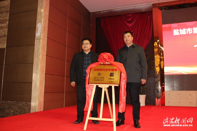 在熱烈的掌聲中,劉宏、戴亞明一起為“鹽城市二院、鹽城市腫瘤醫(yī)院、濱海康達(dá)醫(yī)院腫瘤專(zhuān)科協(xié)作醫(yī)院”揭牌,現(xiàn)場(chǎng)一片歡樂(lè)。