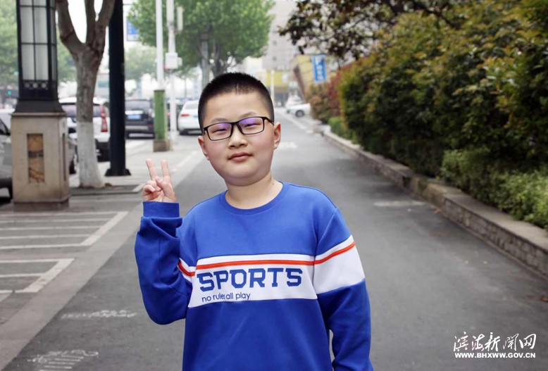 6月12日,記者在縣第二實(shí)驗(yàn)小學(xué)的教室里看到了正在自習(xí)的顧明杰。一身紅色校服,留著精神的小寸頭,戴著一副黑框眼鏡。在班主任于老師的示意下,顧明杰來到了記者跟前,禮貌地打了聲招呼……記者從他的言語中能感受到他的陽光和自信。
