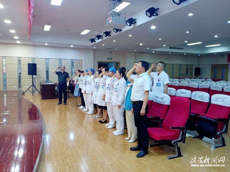 “七一”前夕,縣人民醫(yī)院各黨支部分別組織黨員重溫入黨誓詞?!拔抑驹讣尤胫袊伯a黨,擁護黨的綱領,遵守黨的章程,履行黨員義務,執(zhí)行黨的決定……”全體黨員由所在黨支部負責人領誓,向黨組織再次作出莊嚴承諾。