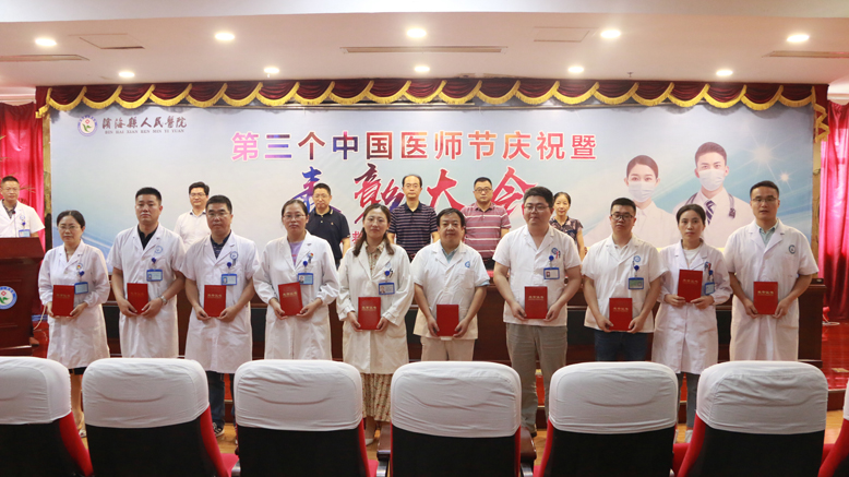 為隆重慶祝第三個“中國醫(yī)師節(jié)”,激勵醫(yī)師自尊自愛、愛崗敬業(yè)、投身醫(yī)改、服務(wù)群眾,近日,縣人民醫(yī)院召開第三個“中國醫(yī)師節(jié)”慶祝暨表彰大會。醫(yī)院領(lǐng)導(dǎo)滕宏偉、戴斌、劉斌、楊華、嚴(yán)臘梅出席。中層以上干部和接受表彰醫(yī)師參加。