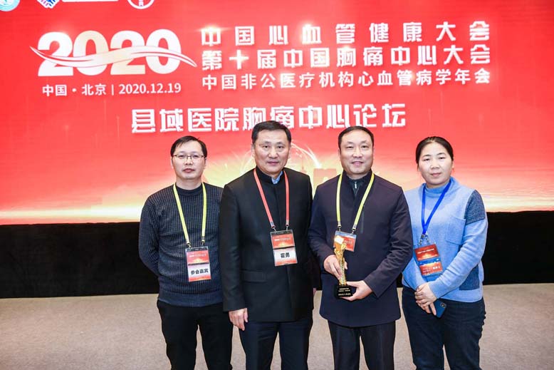 近日在北京國家會議中心召開的中國心血管健康大會、第十屆中國胸痛中心大會上,專家從通過認證的全國1672家胸痛中心中,評選出19家胸痛中心授予“開拓先鋒獎”。縣人民醫(yī)院胸痛中心位列其中,成為近年來在國家胸痛中心大會上唯一兩次獲獎的縣級醫(yī)院。中華醫(yī)學會國家心血管健康聯(lián)盟、國家胸痛中心聯(lián)盟副主席霍勇教授為該院參會代表、副院長劉愛軍,副主任張永林,護士長劉冬蘭頒發(fā)獎杯。