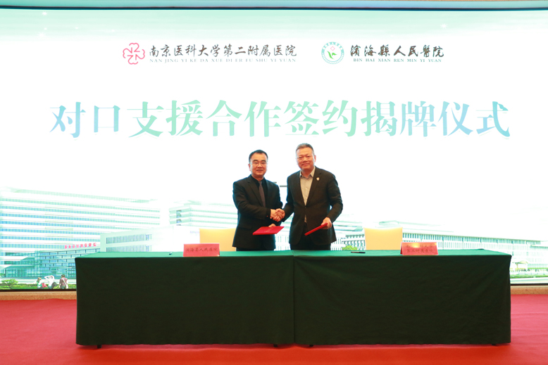 二附院主要負(fù)責(zé)人與市領(lǐng)導(dǎo)共同為“南京醫(yī)科大學(xué)第二附屬醫(yī)院市級(jí)重點(diǎn)專科孵化基地”揭牌。二附院負(fù)責(zé)人與縣人民醫(yī)院黨委書記、院長(zhǎng)吳限簽署“南京醫(yī)科大學(xué)第二附屬醫(yī)院心血管中心濱海分中心合作協(xié)議”。二附院對(duì)口支援幫扶科室腎內(nèi)科、普外科、神經(jīng)內(nèi)科、康復(fù)醫(yī)學(xué)科、皮膚科、生殖醫(yī)學(xué)科,與縣醫(yī)院對(duì)應(yīng)受援科室簽署“??茙头鰠f(xié)議”。