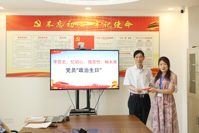 為深化黨史學習教育,引導黨員干部深刻領悟紅色初心,強化黨員的宗旨意識、身份意識和責任意識,6月24日下午,該院黨支部組織開展了“學黨史 憶初心 強黨性 暢未來”黨員政治生日活動,為5名黨員同志過“政治生日”。