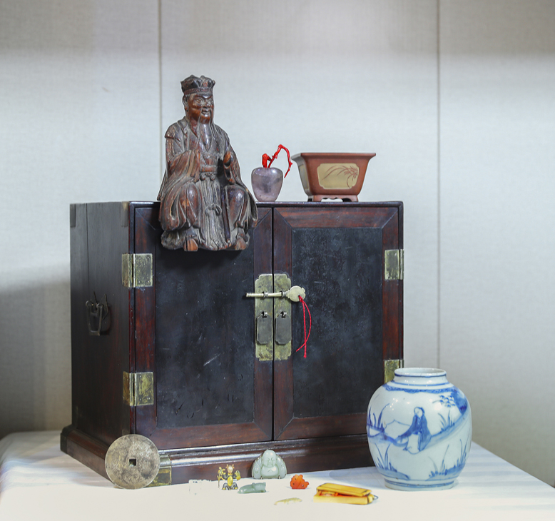 忙碌之余,陶福崗每發(fā)現(xiàn)一件品相不錯的物件,就會盡力買下。每到一個新地方,總會到當?shù)毓磐媸袌鲛D一轉。特別是近年來政府拆遷改造,民間掀起收藏熱,很多文物再現(xiàn)并流向市場,他更不惜重金收藏自己感興趣的物件。陶福崗說:“如果我不買,這些文物可能到處流落,甚至被損壞或流失海外?!庇谑?,少則幾千元,多則幾萬元,收集文物,他從不吝嗇。陶福崗還經常參加馳名中外、頗享盛譽的北京“中貿圣佳”和杭州西泠等拍賣公司舉辦的各類拍賣會,順利拍得紫砂、石盆、銅器、玉器、郵幣卡、明清硬木軟木家具,館藏不斷豐富。