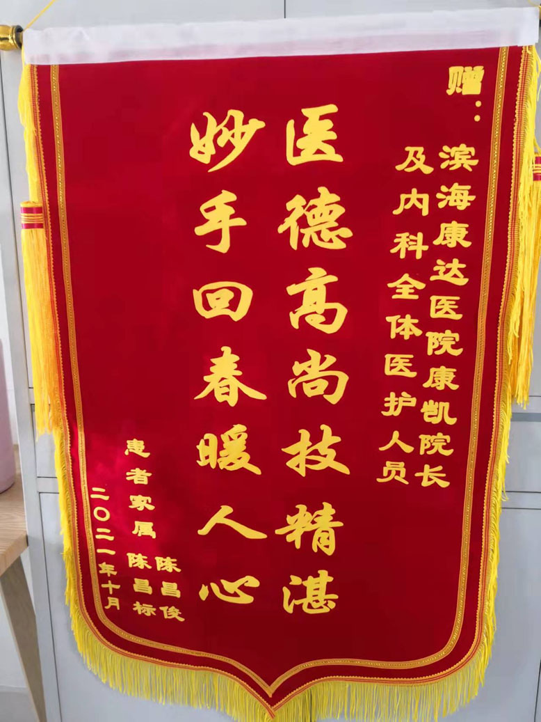 日前,康達(dá)醫(yī)院心內(nèi)科專家門診上演溫馨的一幕。兩位中年男子滿面春風(fēng)手捧一面寫著“醫(yī)德高尚技精湛,妙手回春暖人心”的錦旗遞到主任醫(yī)師、業(yè)務(wù)院長康凱手里,激動(dòng)地說:“非常感謝康院長治好我母親的病,解除老人家久治不愈的病痛,提升了我們?nèi)胰说纳钯|(zhì)量,感謝您及病區(qū)醫(yī)護(hù)人員……”患者親人的肺腑之言,彰顯的是醫(yī)患之間的真誠與和諧。