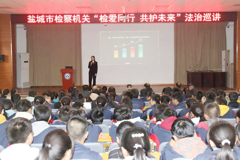 近日,明達(dá)中學(xué)在該校報(bào)告廳舉辦“檢愛同行 共護(hù)未來”為主題的法治宣講活動(dòng)。鹽城市“湖海未檢”法治宣講團(tuán)三位檢察官精彩的演講,解開了同學(xué)們心中一個(gè)個(gè)疑惑。報(bào)告廳里笑聲陣陣、掌聲如潮。