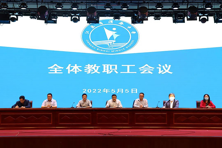 5月5日,濱海中學全體教職工會議召開。濱海中學黨委書記、校長陸建,高曉東、許耀兵、孫其康、楊漢、樊啟成、秦伯萍等校領導出席。會議由副校長高曉東主持。