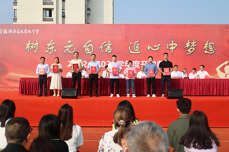 同學(xué)們,有人把高中三年學(xué)習(xí)過(guò)程比喻為“過(guò)坎、爬坡、登峰”,我認(rèn)同這個(gè)形象的說(shuō)法。高一課程多,而且數(shù)理化重難點(diǎn)集中,一般來(lái)說(shuō),對(duì)高一的重視程度與三年后的高考是正相關(guān)的,所以,我希望高一的同學(xué)們要努力邁過(guò)初高中銜接這道坎兒,不能認(rèn)為高一剛開始,有的是時(shí)間。過(guò)往的教訓(xùn)告訴我們,不少同學(xué)就是被這道“坎”絆倒,未能達(dá)到應(yīng)有的高度,悔之晚矣。古人早就規(guī)勸我們“少年易老學(xué)難成,一寸光陰不可輕。未覺(jué)池塘春草夢(mèng),階前梧葉已秋聲”;高二的同學(xué)們要面臨選科后的合格性考試,“坡”度不大,要力爭(zhēng)一次性跨越,不留欠賬到高三;高三的同學(xué)們,你們是東元的首屆畢業(yè)生,可以這樣說(shuō),你們什么樣子,未來(lái)的東元就是什么樣子,雖然文化起分比不上后面的兩屆,但高三的精氣神是好的,合格性考試一次過(guò)關(guān)率99.6%。我堅(jiān)信,在全體教師的辛勤培育下,你們一定能達(dá)到理想的高度。我們要有“首屆有我、首屆必勝”的自信,你們?yōu)闁|元良好學(xué)風(fēng)打下的基礎(chǔ)一定會(huì)影響深遠(yuǎn)。許多年之后,當(dāng)你們回到東元,一定會(huì)自豪地說(shuō):“我們東元首屆生,沒(méi)有辜負(fù)青春年華,沒(méi)有辜負(fù)師長(zhǎng)的培養(yǎng)!”