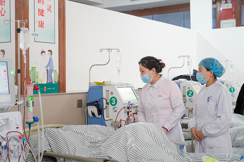 2023年2月27日,腎臟內(nèi)科病房及血透室順利擴(kuò)建搬遷至縣人民醫(yī)院康復(fù)中心院區(qū)(位于濱??h城港城路3號)。病房床位擴(kuò)充至30張,常規(guī)開展急慢性腎衰竭、慢性腎炎、繼發(fā)性腎臟疾病、急性腎損傷、尿路感染等臨床診治,對腎臟病專業(yè)常見病、多發(fā)病及疑難危急重癥患者實施規(guī)范化治療。同時與南京醫(yī)科大學(xué)第二附屬醫(yī)院腎內(nèi)科建立雙向轉(zhuǎn)診、遠(yuǎn)程會診等制度,實現(xiàn)優(yōu)質(zhì)醫(yī)療資源共享,確?;颊咴\斷正確與治療精準(zhǔn)。