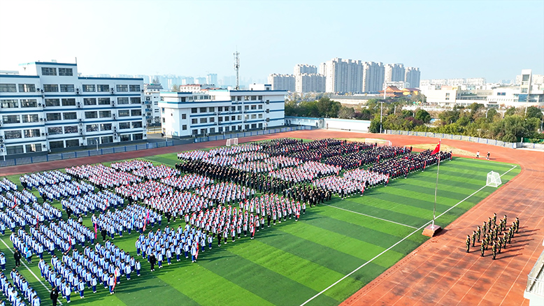 日前,明達(dá)中學(xué)3600多位師生齊聚操場(chǎng),舉行升旗儀式,同時(shí)進(jìn)行迎評(píng)四星總動(dòng)員。