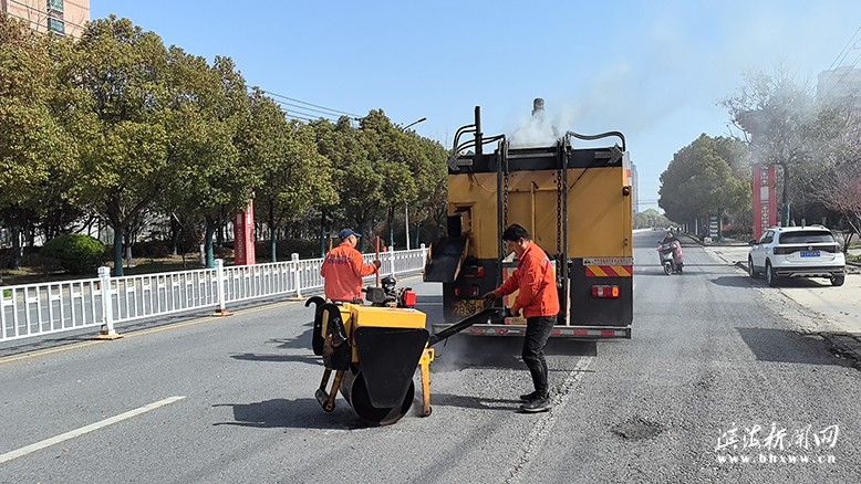 一是瀝青道路提質(zhì)煥新。針對巡查中發(fā)現(xiàn)的瀝青路面隆起、凹陷、裂縫等問題,使用瀝青路面養(yǎng)護(hù)綜合車、切縫機(jī)、電鎬、小型壓路機(jī)等設(shè)備應(yīng)急修復(fù)“小坑微塘”,自4月1日以來,累計修復(fù)50余處、共100余平方米,全力守護(hù)群眾“腳下安全”。
