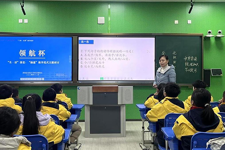 學(xué)校與溧陽(yáng)市外國(guó)語(yǔ)小學(xué)充分發(fā)揮兩校教育資源優(yōu)勢(shì),不斷深化合作,加強(qiáng)師資培養(yǎng),定期開(kāi)展聯(lián)合教學(xué)教研活動(dòng)、跨學(xué)科實(shí)踐活動(dòng)等,一路攜手,一路花香。一年來(lái),兩校共開(kāi)展活動(dòng)7次,“芮金芳名校長(zhǎng)工作室”開(kāi)展線上交流活動(dòng)2次,“蔣亞芳名班主任工作室”開(kāi)展線上交流活動(dòng)2次。12月,邀請(qǐng)溧陽(yáng)名師團(tuán)來(lái)濱講學(xué)觀摩,學(xué)校3名老師執(zhí)教示范課,與溧陽(yáng)名師攜手共進(jìn)共研,深入推進(jìn)課堂教學(xué)改革。學(xué)校積極發(fā)揮“龍頭校”示范輻射作用,在集團(tuán)化辦學(xué)中主動(dòng)擔(dān)當(dāng),邀請(qǐng)成員校“點(diǎn)單”,開(kāi)展“把握命題導(dǎo)向、提升作業(yè)設(shè)計(jì)”“低年級(jí)學(xué)生學(xué)習(xí)習(xí)慣養(yǎng)成的有效指導(dǎo)”“語(yǔ)文作文、閱讀教學(xué)”等主題式送教活動(dòng)。發(fā)揮“互聯(lián)網(wǎng)+”智慧教育優(yōu)勢(shì),進(jìn)行城鄉(xiāng)一體同步教學(xué),23名老師參與城鄉(xiāng)互動(dòng)課堂授課活動(dòng),共開(kāi)設(shè)了72節(jié)主講課。另外,學(xué)校還與新疆察布查爾縣烏宗布拉克農(nóng)村社區(qū)小學(xué)線上聯(lián)誼,促進(jìn)兩地少年兒童交往交流。
