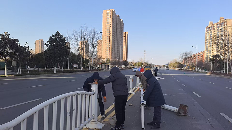 市政養(yǎng)護人員對破損的人行道、交通護欄等市政設(shè)施,嚴格落實即壞即修的快速維修機制,及時維護市政設(shè)施完好。