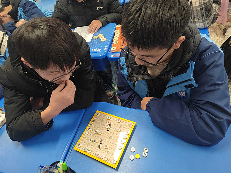 現(xiàn)場(chǎng)競(jìng)技顯智慧。棋類社團(tuán)教室里彌漫著思維的較量。圍棋社團(tuán)成員凝視棋盤推演布局,象棋社團(tuán)“將軍”聲帶著戰(zhàn)術(shù)博弈的緊張,五子棋社團(tuán)不時(shí)響起清脆的落子聲??萍碱惿鐖F(tuán)同樣專注:無(wú)人機(jī)小組研究飛行參數(shù),計(jì)算機(jī)社團(tuán)的同學(xué)在老師的精心指導(dǎo)下,現(xiàn)場(chǎng)學(xué)習(xí)編程基礎(chǔ)知識(shí),認(rèn)真調(diào)試著新編程序。