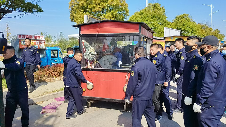 通過(guò)執(zhí)法人員耐心勸導(dǎo),該處大部分?jǐn)傸c(diǎn)主動(dòng)撤離,進(jìn)入臨時(shí)疏導(dǎo)點(diǎn)經(jīng)營(yíng)。但仍有少數(shù)攤販經(jīng)多次勸導(dǎo)無(wú)效,拒不服從疏導(dǎo)管理。4月29日,縣城市管理綜合執(zhí)法大隊(duì)會(huì)同東坎街道、公安部門組織開(kāi)展集中清理行動(dòng),依法取締拒不撤離的占道經(jīng)營(yíng)攤點(diǎn)。此次行動(dòng),累計(jì)出動(dòng)執(zhí)法人員110人次,執(zhí)法車輛22輛次,依法依規(guī)扣押裝具車5輛、大棚6個(gè)以及眾多桌椅餐具,清運(yùn)現(xiàn)場(chǎng)殘留垃圾10車次。在清理行動(dòng)中,2名攤販因阻撓執(zhí)法,被公安部門依法處理。