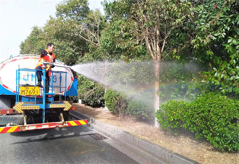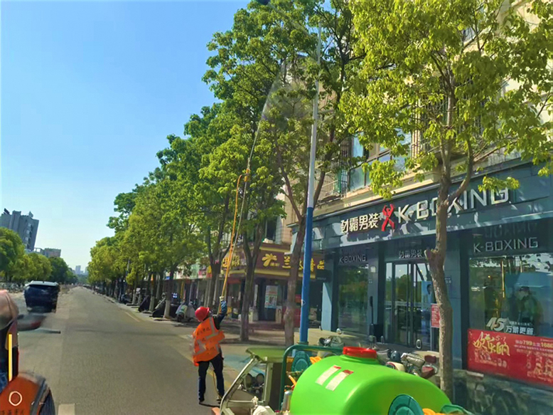 針對(duì)近期縣城降水偏少,新生植株缺水萎靡,易生蚜蟲等病蟲害,縣城管局每天安排2輛綠化灑水車對(duì)阜東路、人民路等20余條道路沿路行道樹、地被植物等進(jìn)行巡回式深度灑水澆灌,沖刷灰塵、蟲卵,日均用水量80余噸,保證植株“喝飽水”煥發(fā)生機(jī)。與此同時(shí),4月中旬開始,還對(duì)2000余棵欒樹、樸樹、重陽(yáng)木全方位噴灑除蟲藥水,每天保證2~3次,標(biāo)本兼治以降低蟲害率。