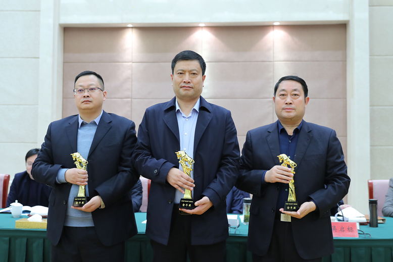 獲得“金牛獎”的通榆鎮(zhèn)、坎北街道、縣住建局負責人上臺領獎。
