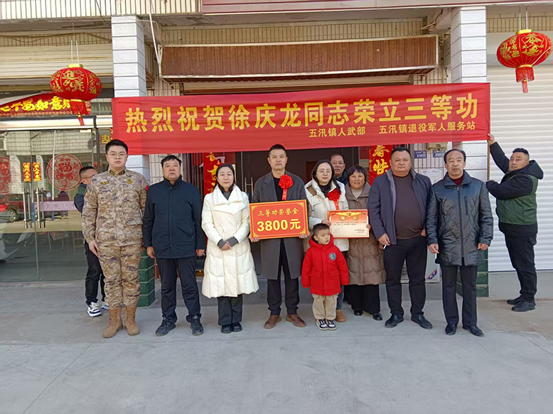 為進(jìn)一步弘揚(yáng)擁軍優(yōu)屬光榮傳統(tǒng),營造關(guān)愛現(xiàn)役軍人軍屬的良好氛圍。2025年春節(jié)期間,五汛鎮(zhèn)開展集中送喜報(bào)活動(dòng),為2名榮立三等功的軍人家庭送去祝賀和榮譽(yù)金,感謝他們?yōu)樽鎳囵B(yǎng)優(yōu)秀軍人,為家鄉(xiāng)贏得榮譽(yù),希望他們繼續(xù)支持軍人扎根軍營,再立新功。