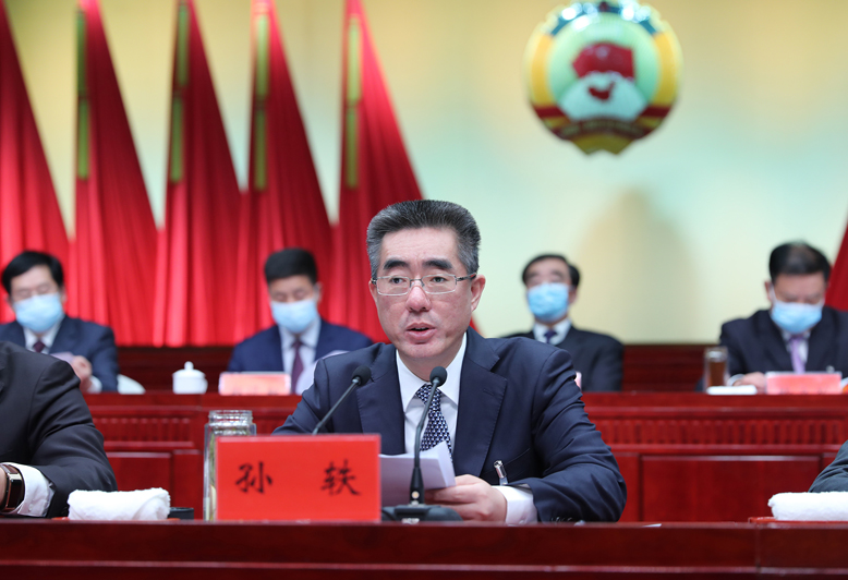 1月6日,市委常委、縣委書記孫軼在政協(xié)濱海縣十三屆五次會議上講話。 (本報記者 陳其龍 攝)
