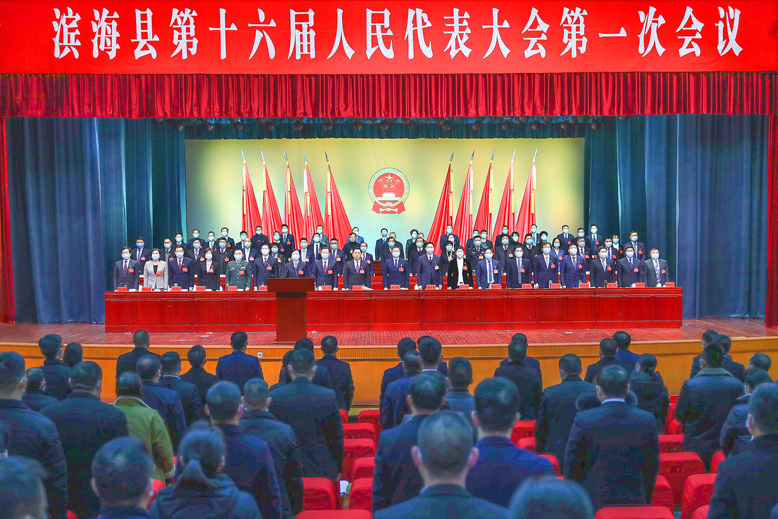 上午9時(shí)許,宋濱東宣布:濱海縣第十六屆人民代表大會(huì)第一次會(huì)議開幕。全體起立,奏唱國(guó)歌。