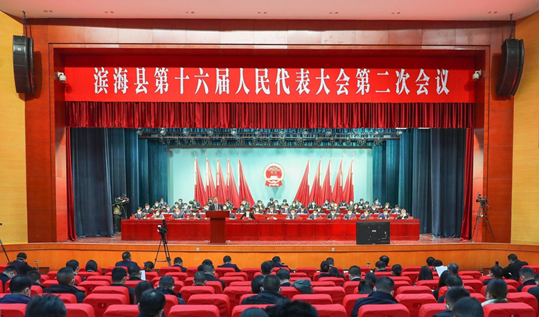 濱??h十六屆人大二次會議會場。 (本報記者 陳其龍 攝)