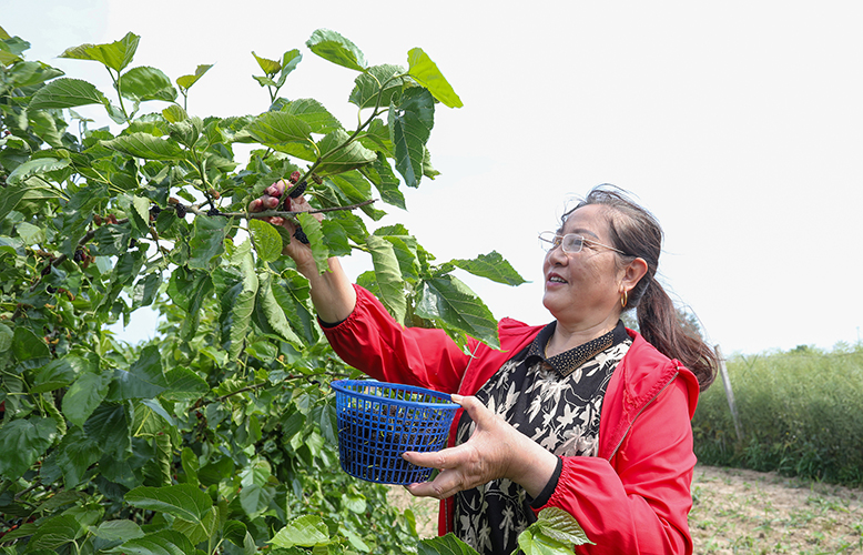 近日,濱海港經(jīng)濟(jì)區(qū)雙堆村桑果園里,顆顆飽滿多汁的桑葚掛滿枝頭,吸引了眾多游客前來(lái)體驗(yàn)采摘樂(lè)趣,享受田園風(fēng)光。 (本報(bào)記者 劉朔池 攝) (本條新聞版權(quán)歸濱海日?qǐng)?bào)所有,轉(zhuǎn)載請(qǐng)注明出處。)