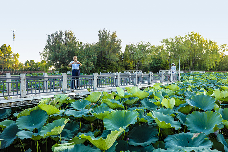 炎炎烈日下,濱海公園荷花競相綻放,綠葉簇?fù)矸埙?,勾勒出如詩如畫的荷塘美景,吸引市民打卡拍照? (本報(bào)記者 吳貴民 攝) (本條新聞版權(quán)歸濱海日報(bào)所有,轉(zhuǎn)載請注明出處。)