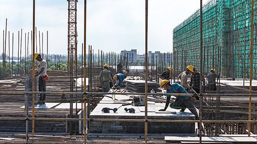 8月19日,蘇鹽重工機械項目建設現場,運輸車輛往來穿梭,工人們正在有序施工。該項目總投資30億元,占地357畝,規(guī)劃新建廠房17.5萬平方米,建成后將形成年產20萬噸高端裝備鑄鍛件生產能力。 (本報記者 劉朔池 攝)