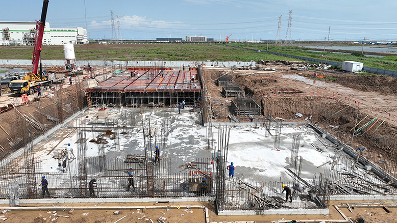 凱金年產(chǎn)20萬(wàn)噸高性能鋰離子電池負(fù)極材料項(xiàng)目,是今年省重大項(xiàng)目,計(jì)劃今年10月主體全部完工。目前,施工單位正加快進(jìn)度,確保如期竣工。 (本報(bào)記者 陳沭宇 攝) (本條新聞版權(quán)歸濱海日?qǐng)?bào)所有,轉(zhuǎn)載請(qǐng)注明出處。)