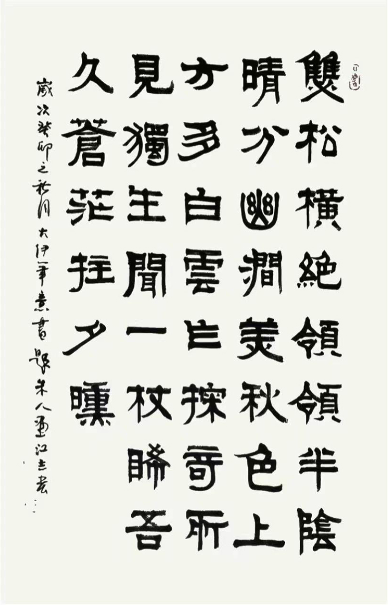 書法創(chuàng)作關(guān)鍵的是字外功,字在字外。這個字外就是要具有扎實的國學功底,通讀中國古典詩詞,刻苦學習國學的基礎(chǔ)原理。我們要在中國文字的書寫里體現(xiàn)多面性,要師古人,像我們臨摹二王書法、石門頌、石鼓文及眾多的漢碑,就是要把前輩的精華融入到自己的作品中來、融進自己的創(chuàng)作意念中,這樣的創(chuàng)作才會更有意義、更有內(nèi)涵。